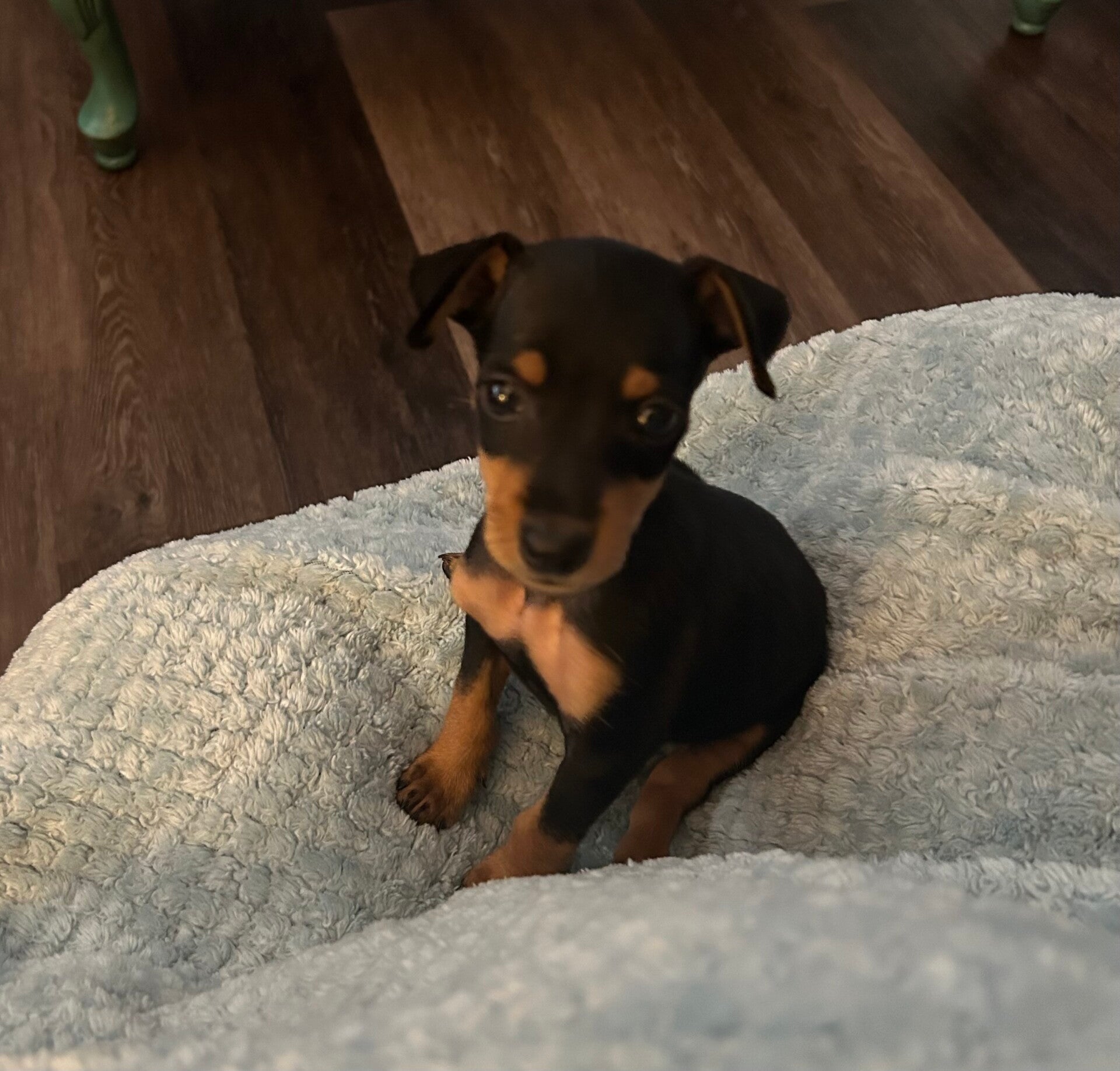 Phillip came to hug me and as he held me he asked me if I wanted to have another pet to help me out of my grief and keep me company. I immediately said NO! I just couldn’t imagine myself with any other dog, but Duke. Phillip told me that he knew there would never be another Duke, but he thought it would be good for my broken heart if I had a new friend. He put his plan into motion and found what he thought would be the perfect breed for me. Something small yet active to motivate me to get back up and outside as much as I am possibly able; EOS makes that difficult sometimes. Phillip chose a Min Pin!! He spoke to his SIL (her brother and niece are veterinarians and breeders of Miniature Pinschers) and told her how sad I’d been and that he was interested in a Min Pin pup, if he could talk me into having one. I still was not 100% on board. She said she would help him find one.